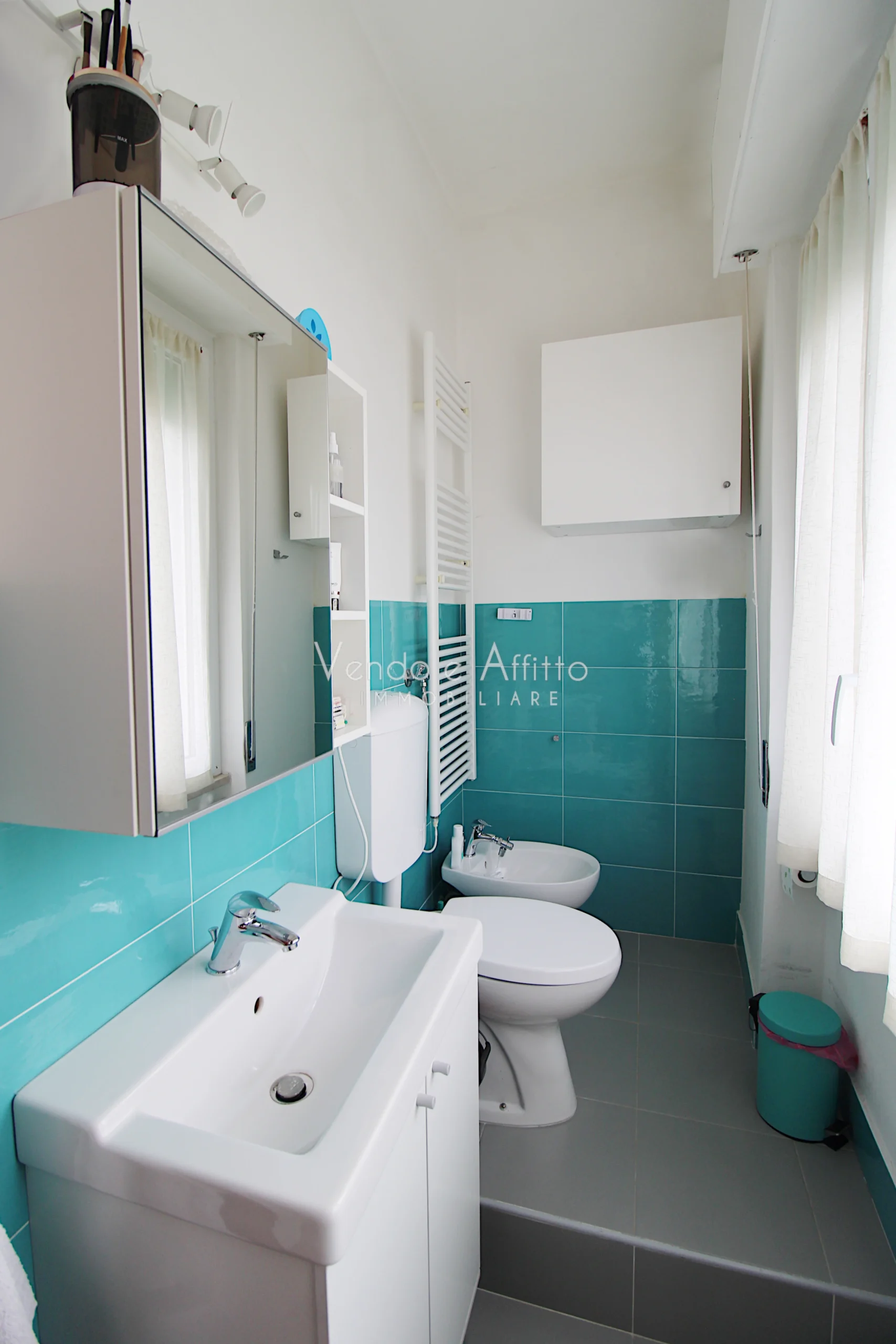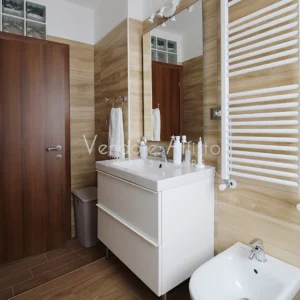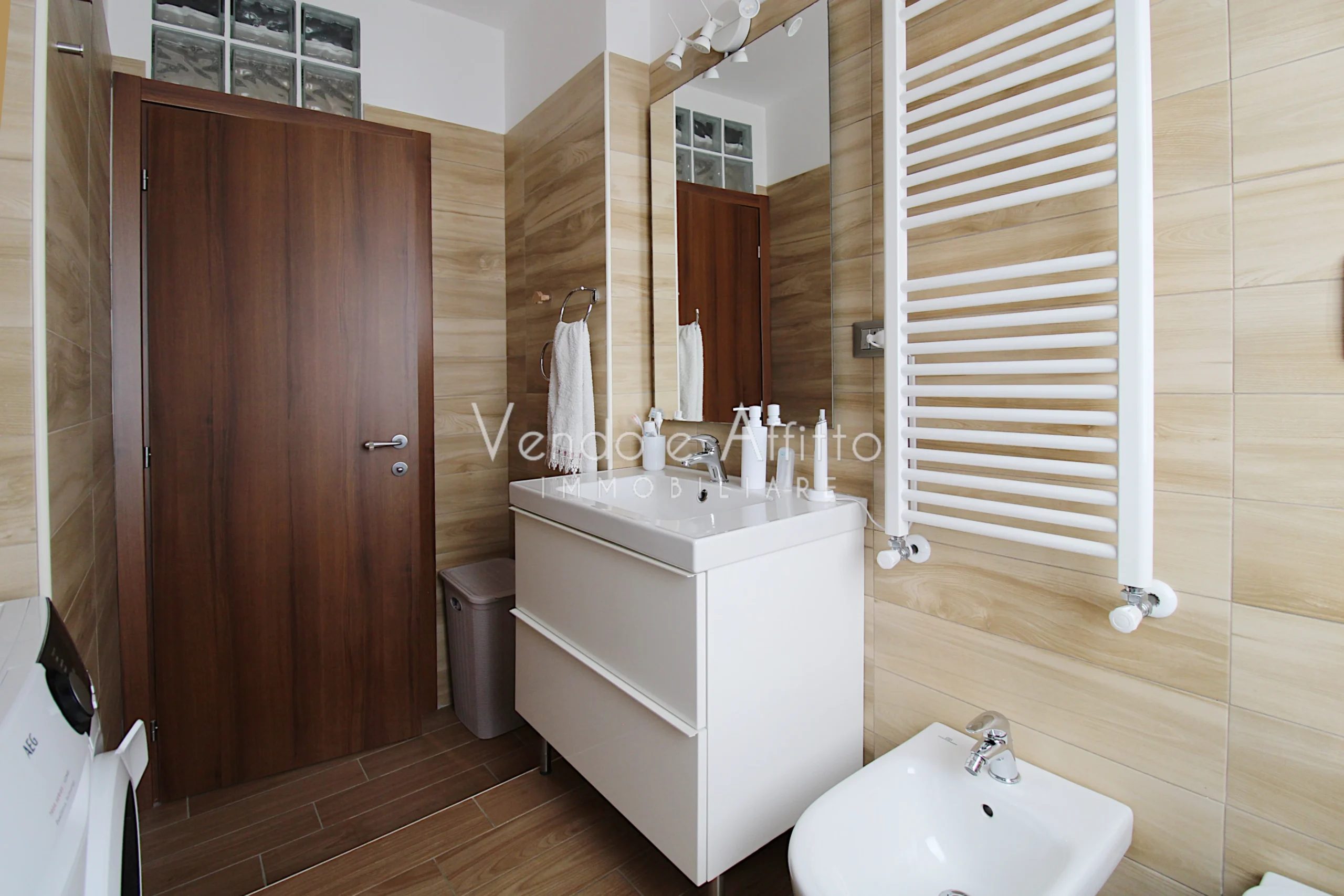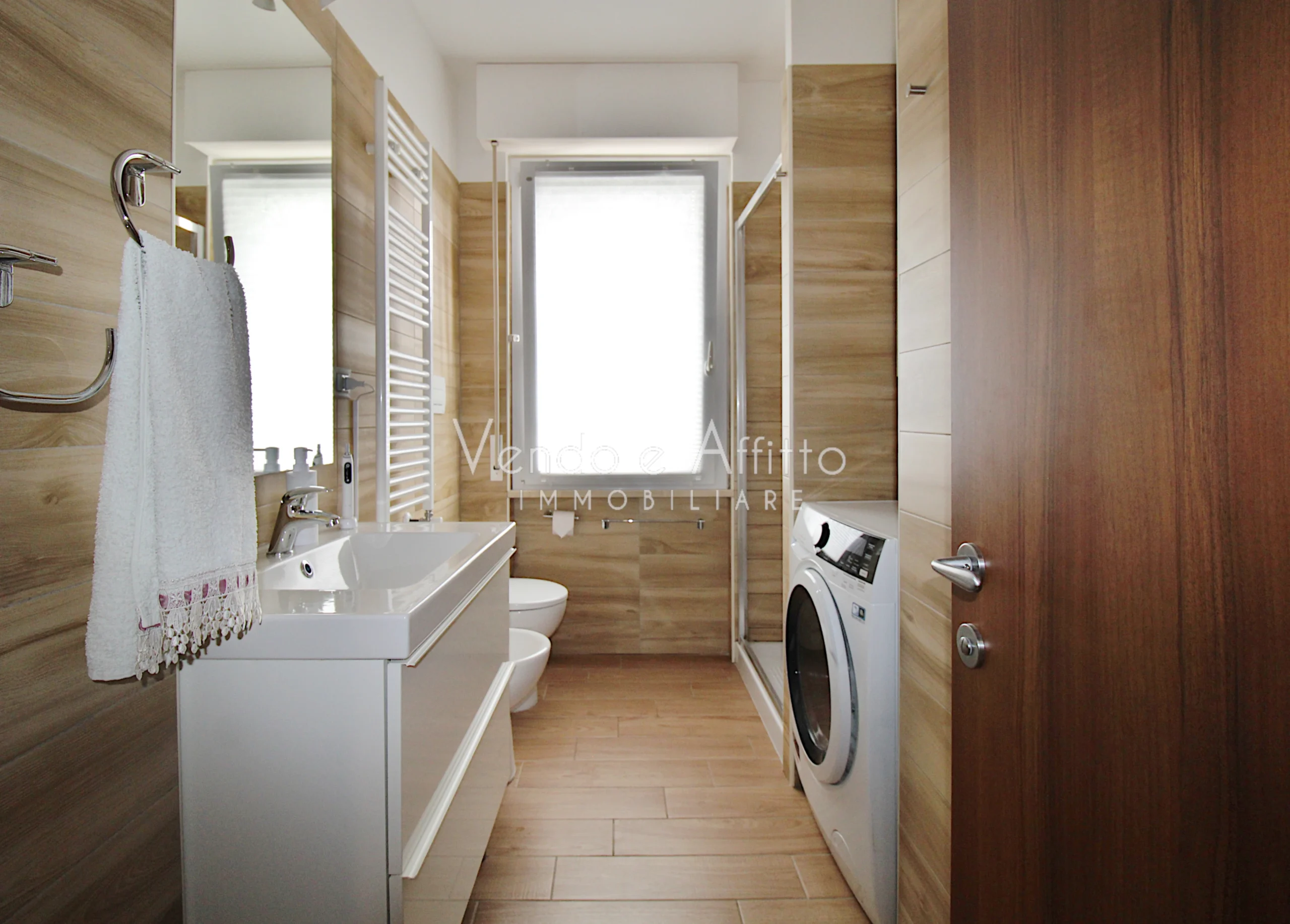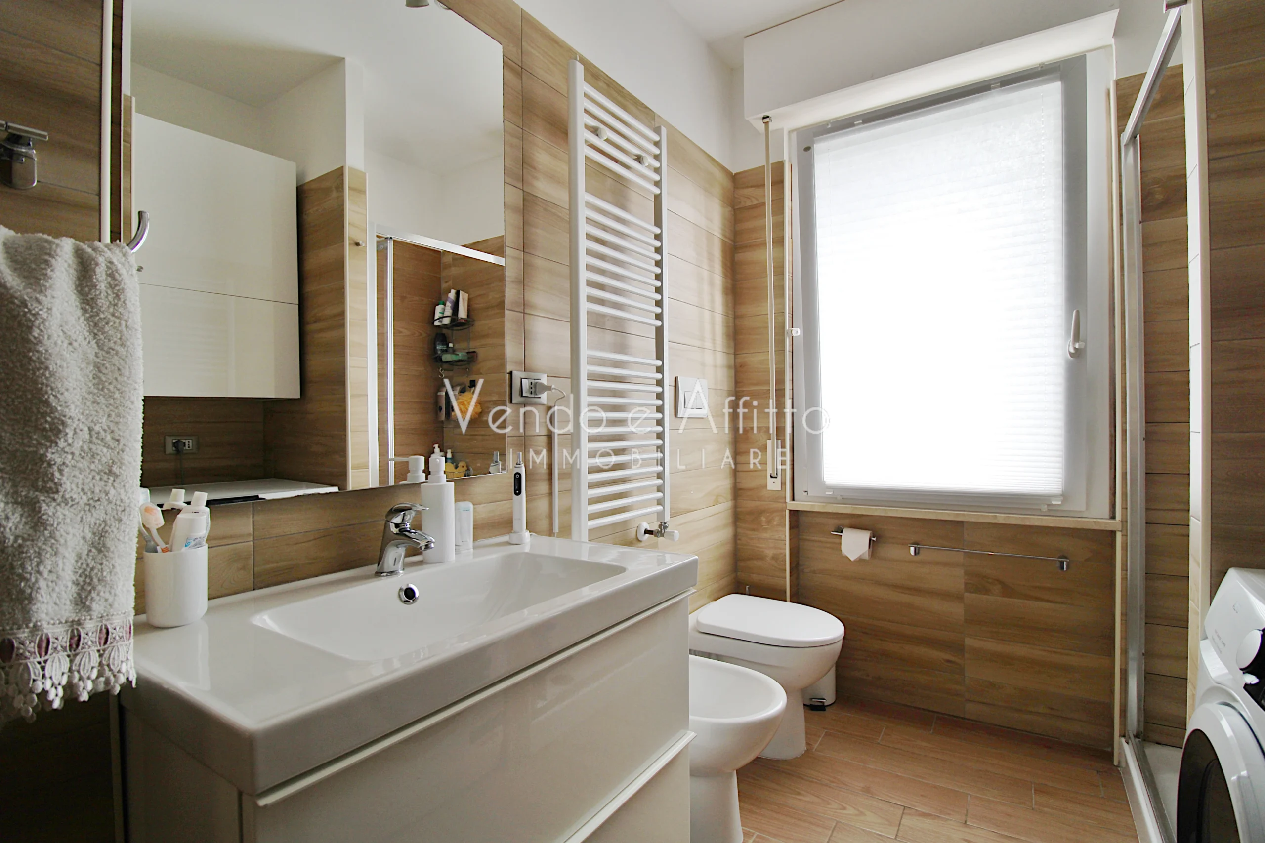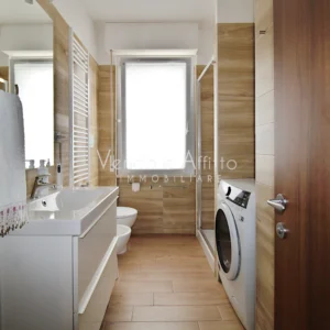 - Bagno principale con doccia, sanitari, lavabo e nicchia lavanderia