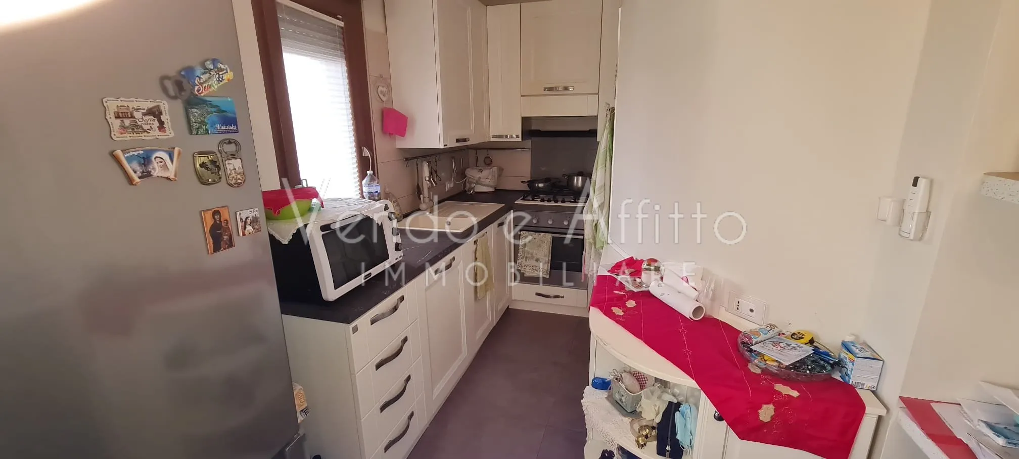 L’appartamento si apre su una luminosa zona giorno con angolo cottura, uno spazio accogliente e funzionale, perfetto per la vita quotidiana.